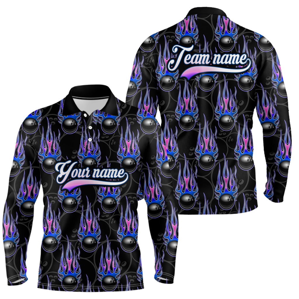 Black Bowling Ball Camo Blue Flame Bowling Polo, 1/4 Zip Shirt for Men Custom Bowling Team Jersey NQS9480