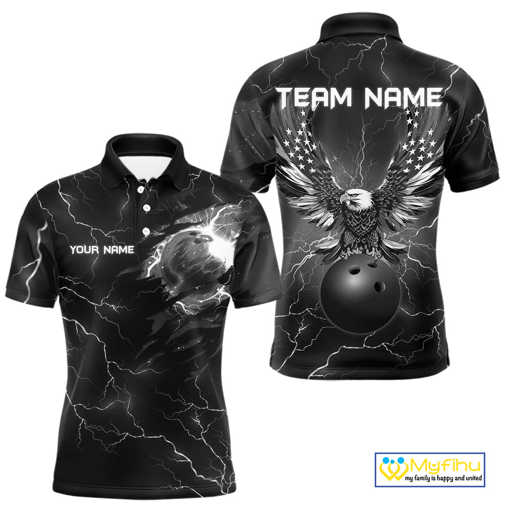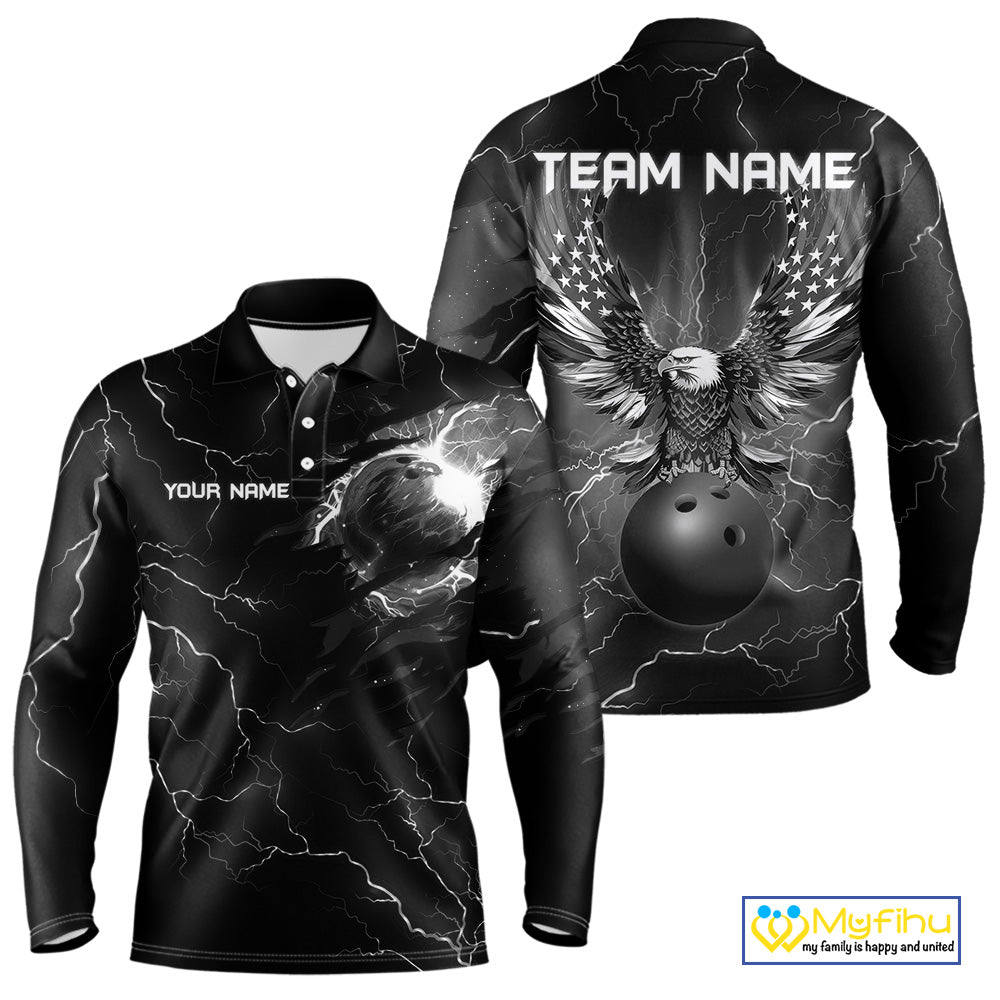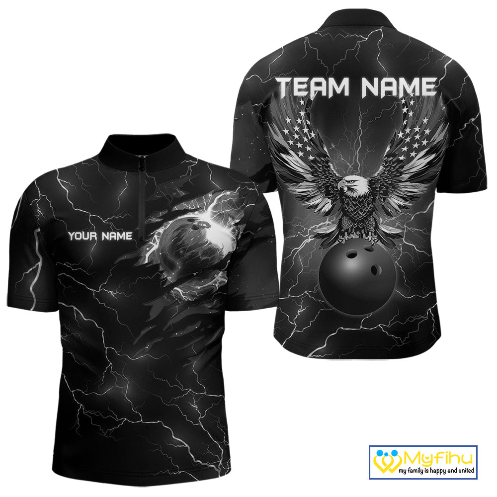 Black lightning thunder bowling American flag Eagle custom Mens Bowling Polo, Quarter Zip Shirts NQS10112