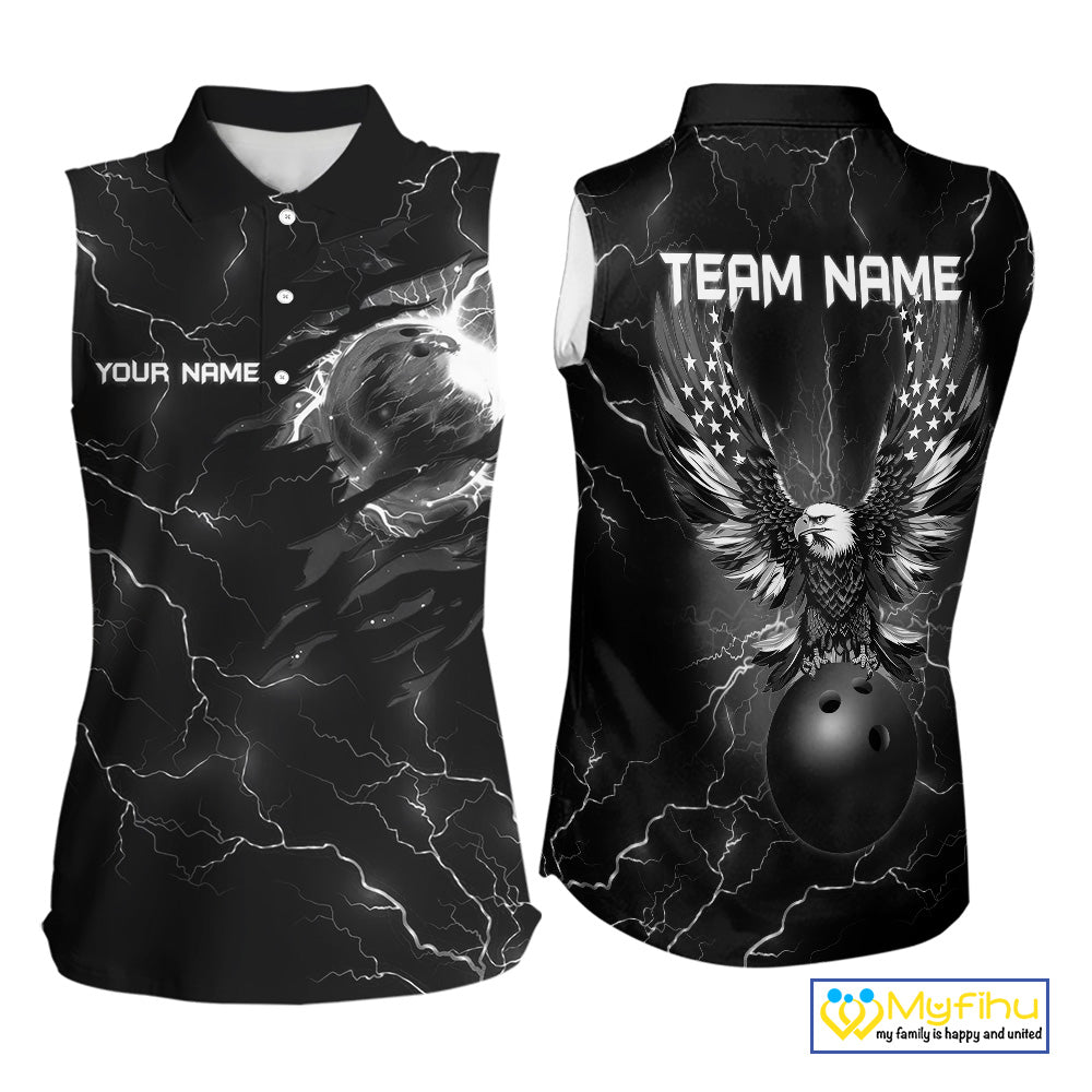 Black lightning thunder bowling American flag Eagle custom Women sleeveless Polo Shirt, team jerseys NQS10112