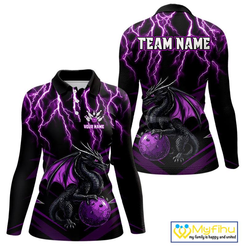 Black & Purple Lightning Thunder Dragon Women Bowling Shirts Custom Dragon Bowling Team Shirt Uniform NQS9805