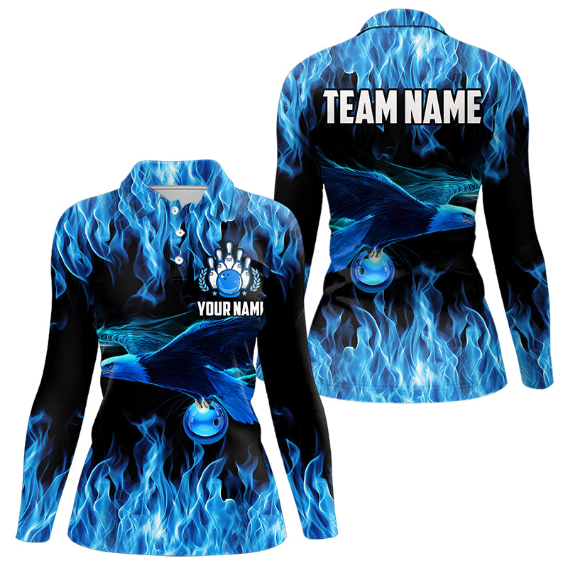 Blue Flame Eagle Custom Bowling Team Shirts For Women, Fire Bowling League Jersey Outfit For Bowler NQS9440