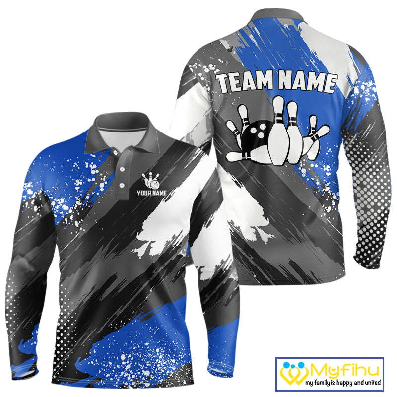 Blue Grunge pattern Bowling Team Shirt For Men Custom Bowling jersey Uniform Bowler Outfits NQS10041