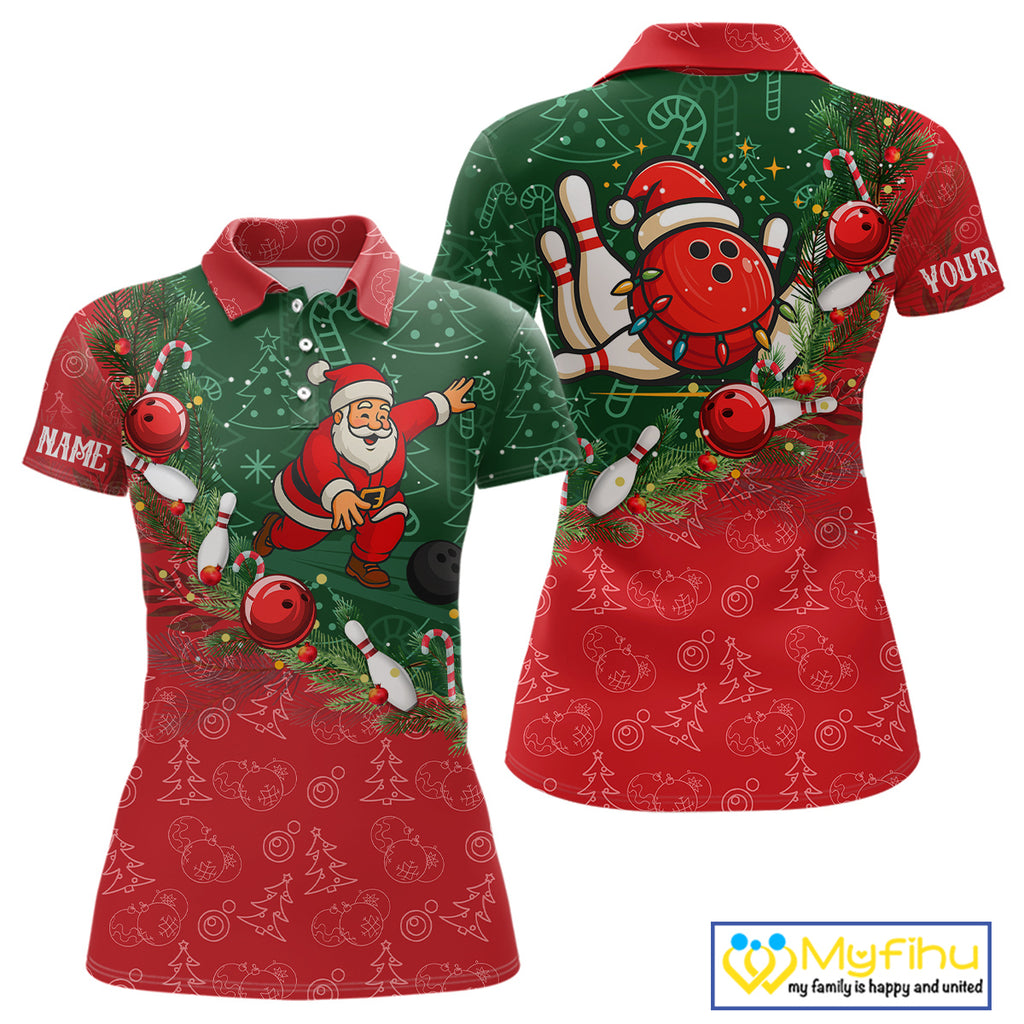 Christmas Santa Women Bowling Polo, Quarter Zip Shirt Custom Christmas Team Bowling outfit For Ladies NQS10342