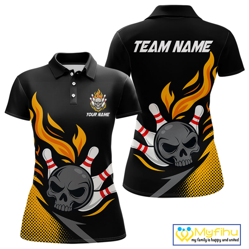 Custom Black and Yellow Flame Skull Bowling shirts for Women, bowling team league jerseys with Name NQS10263