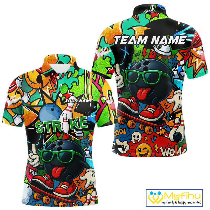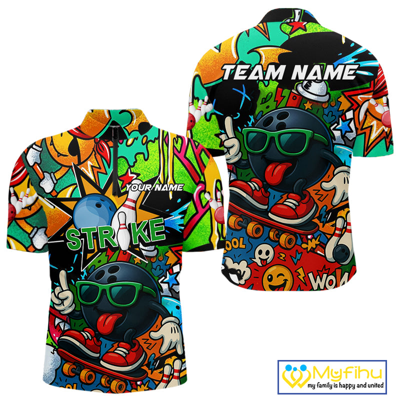 Custom Funny colorful pattern Bowling Team Polo, Quarter Zip Shirt For Men, Mens Bowling Jersey NQS10094
