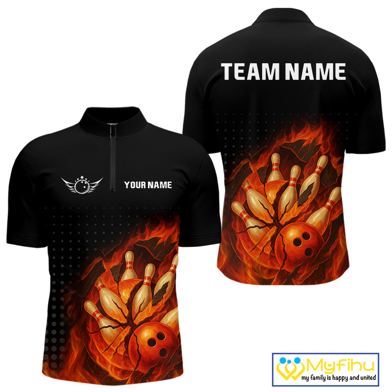 Flame Broken Bowling Ball and pins Bowling Shirt For Men Custom Flame Team Bowling Jerseys NQS10102