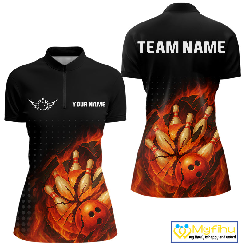 Flame Broken Bowling Ball and pins Bowling Shirt For Women Custom Flame Team Bowling Jerseys NQS10102