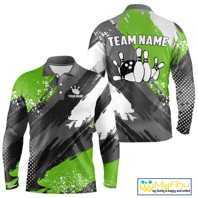 Green Grunge pattern Bowling Team Shirt For Men Custom Bowling jersey Uniform Bowler Outfits NQS10042