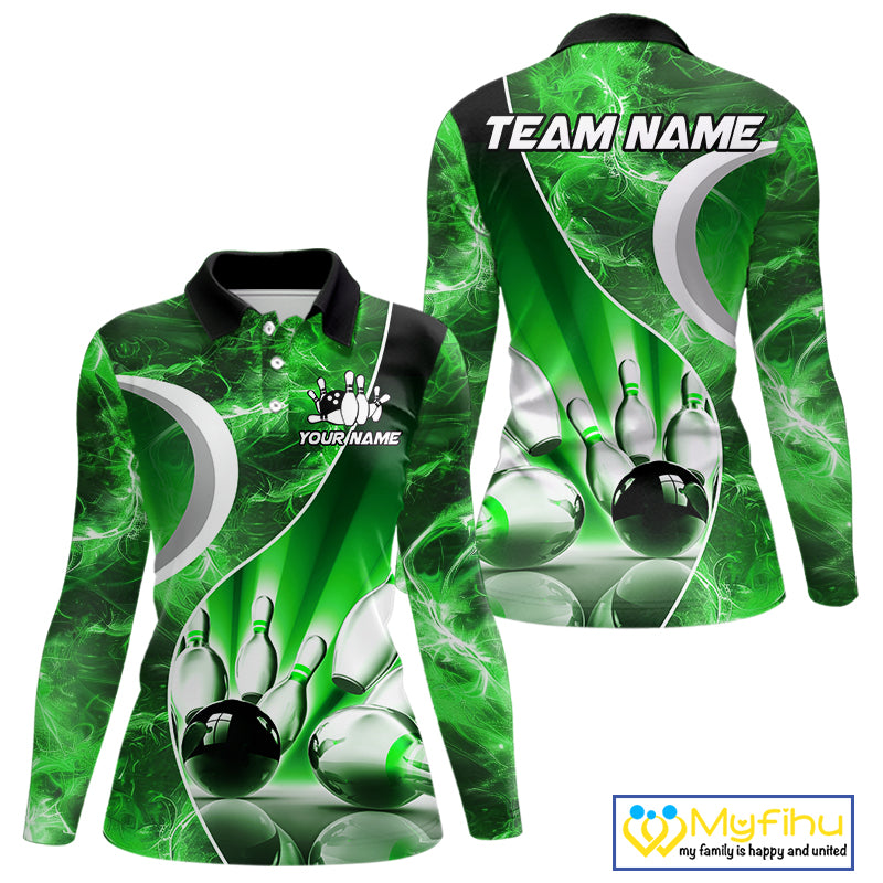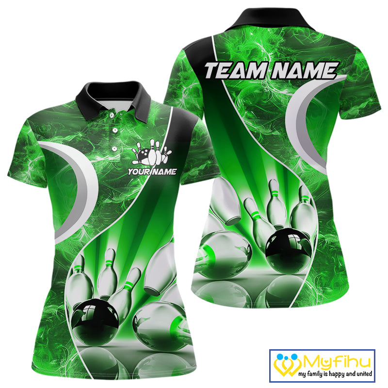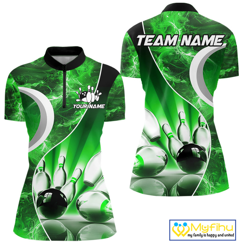 Green Light pattern Bowling Polo, Quarter Zip shirts for Women Custom Bowling Team League Jerseys NQS9949