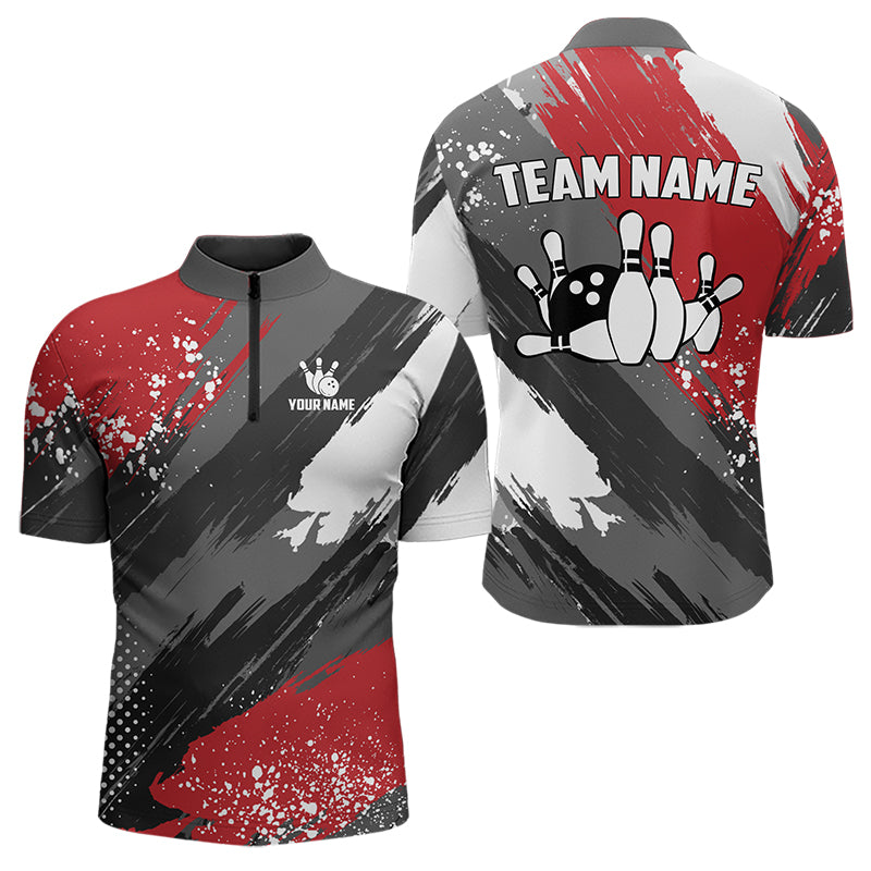 Grunge pattern Bowling Team Polo, 1/4 Zip Shirt For Men Custom Bowling jersey Uniform Bowler Outfits NQS9370
