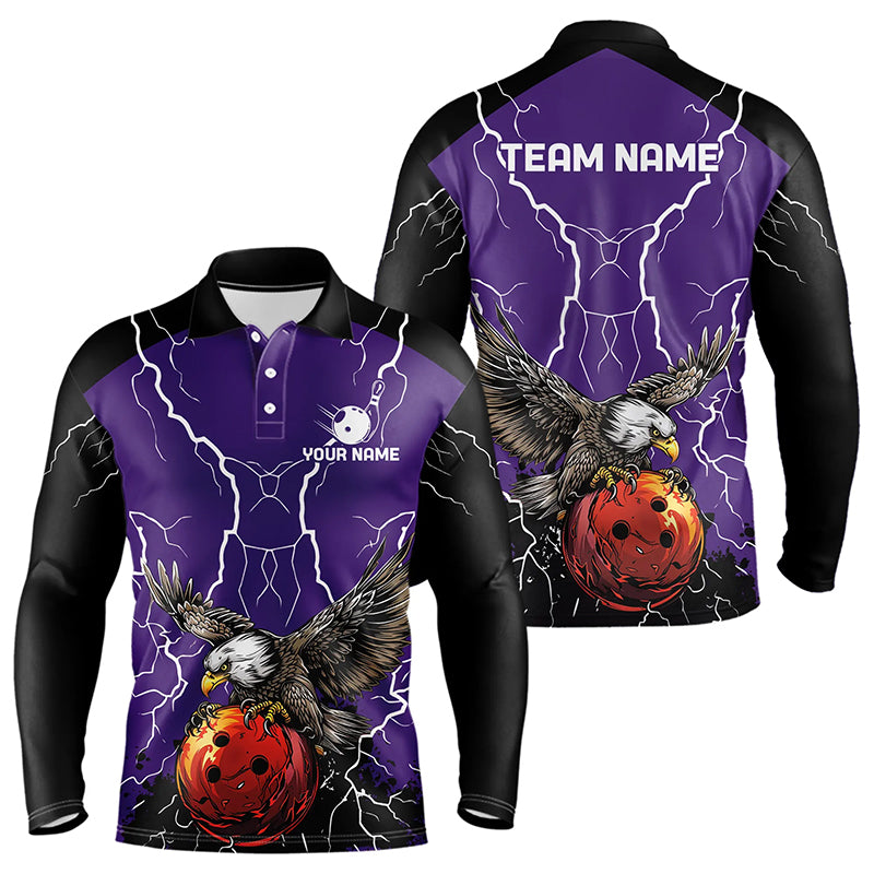 Men's bowling Polo, Quarter Zip shirt Custom Eagle bowling lightning storm team league jersey | Purple NQS9782