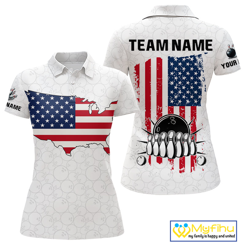 Personalized American Flag White Bowling Shirts For Women Custom patriotic Team Bowling jerseys NQS10184