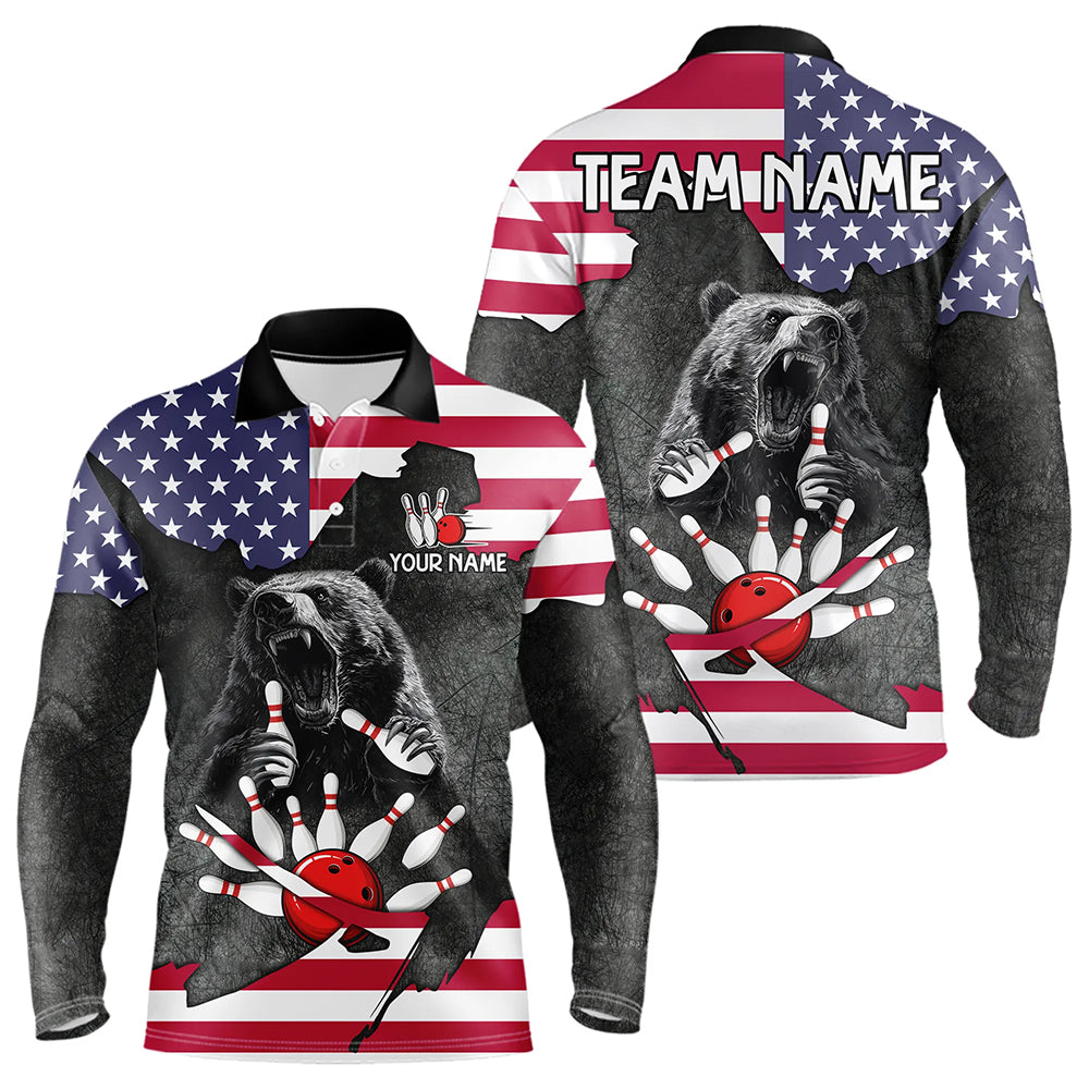 Personalized Black Bear American flag Bowling shirts For Men custom patriotic bowling team jerseys NQS9410