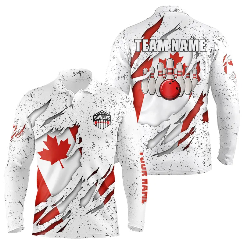 Personalized Canadian Flag Grunge pattern Bowling Shirts For Men Custom Canada Bowling Team Jerseys NQS9495