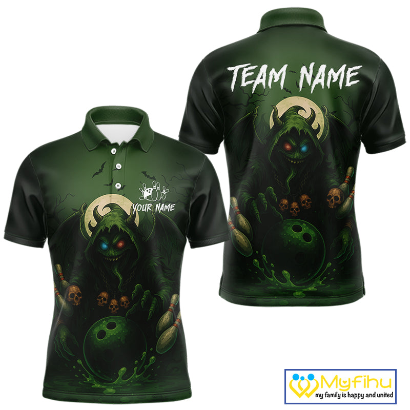 Personalized Green Reaper Skull Halloween Bowling Shirts For Men Custom Halloween Bowling Team jersey NQS10311