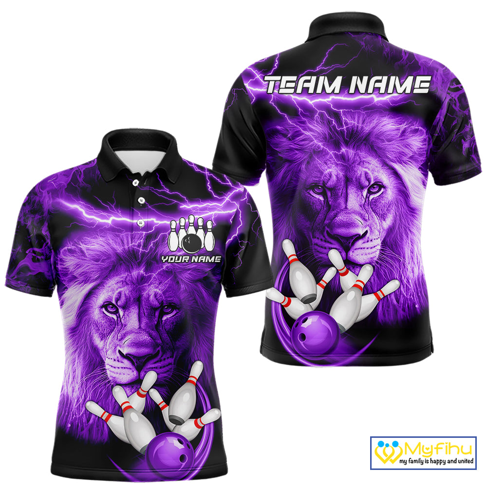 Personalized Purple Lightning Thunder Storm Lion Bowling Shirts For Men Custom Bowling Team Jerseys NQS9839