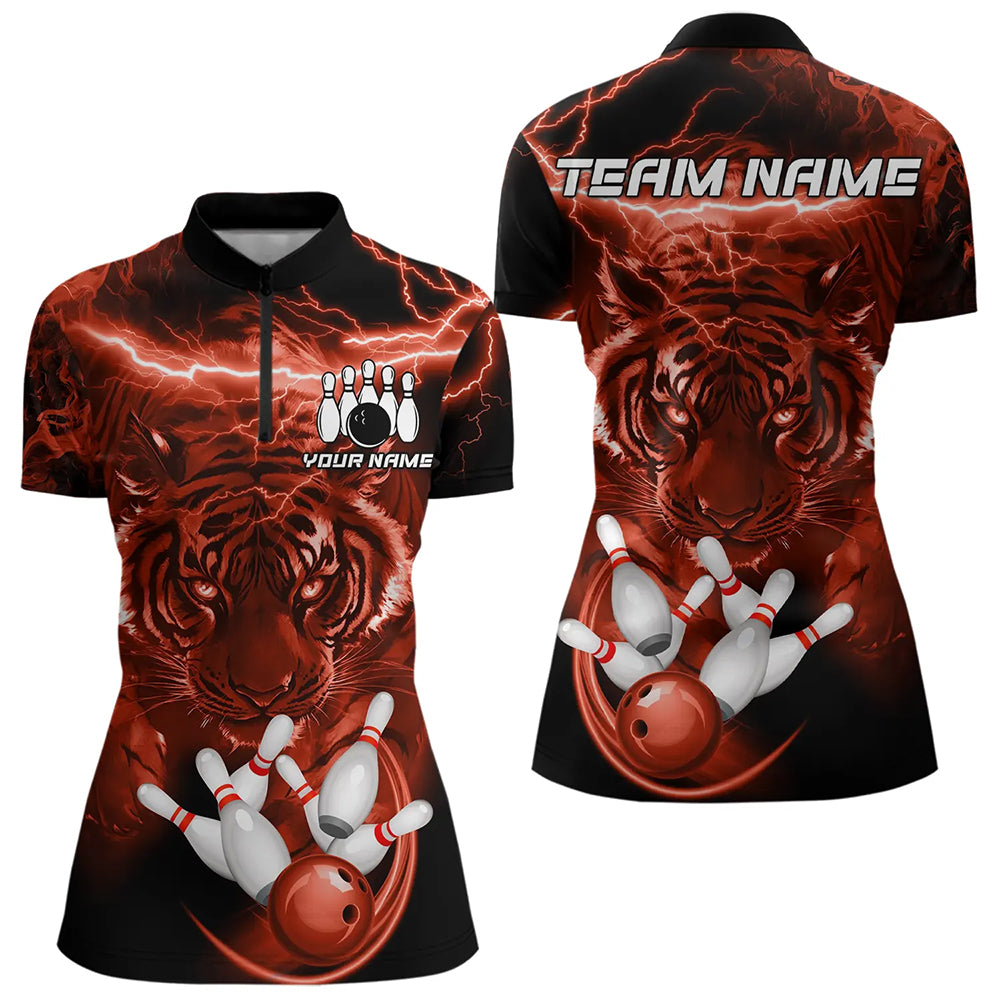 Personalized Red Lightning Thunder Storm Tiger Bowling Shirts For Women Custom Bowling Team Jerseys NQS9683