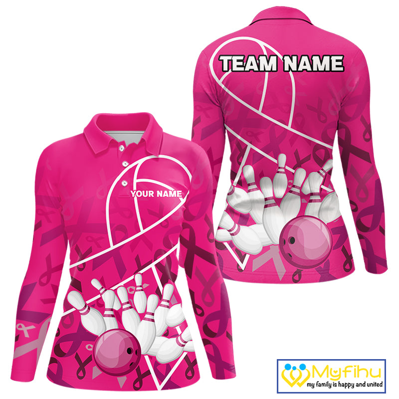 Pink ribbon pattern breast cancer awareness Bowling Shirts For Women Custom team bowling jerseys NQS10190