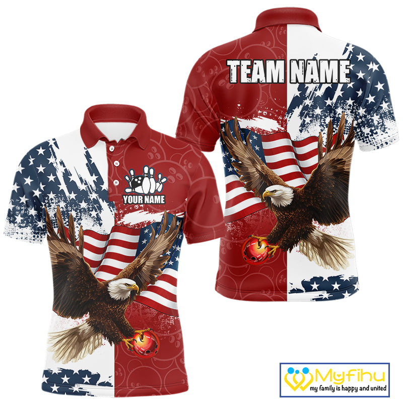 Red, White, Blue American Flag Eagle Men Bowling Shirt Custom Patriotic Red Camo Bowling Team Jersey NQS9864