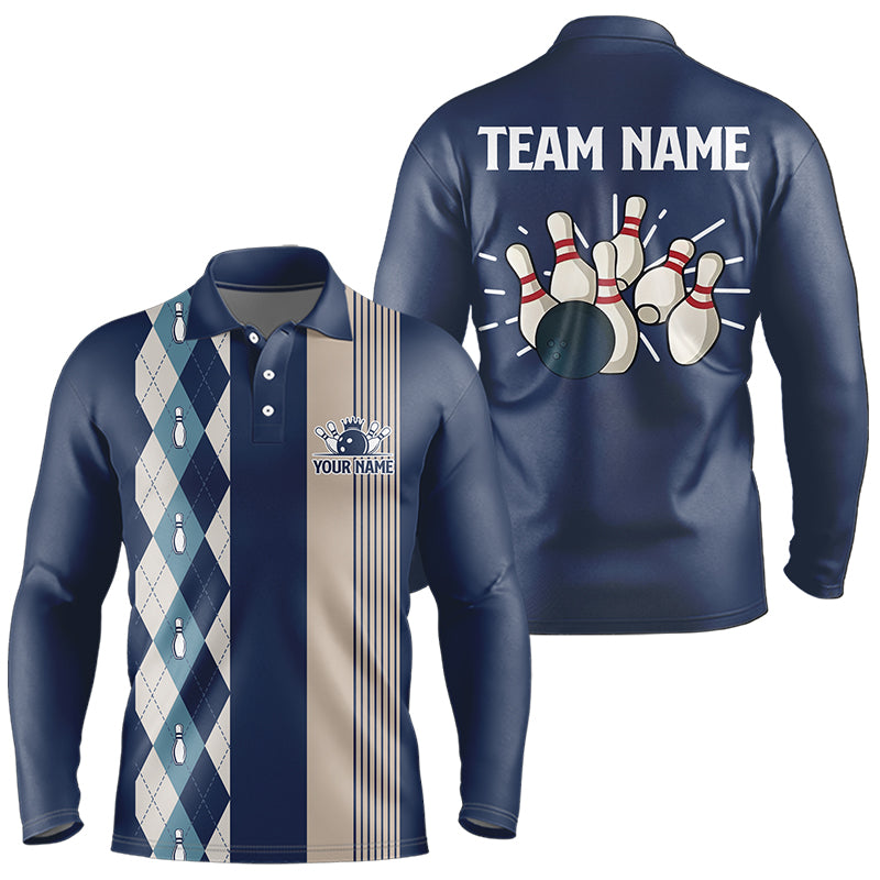 Retro Blue argyle pattern Bowling shirts For Men custom bowling team jerseys Mens Bowler Outfits NQS9411