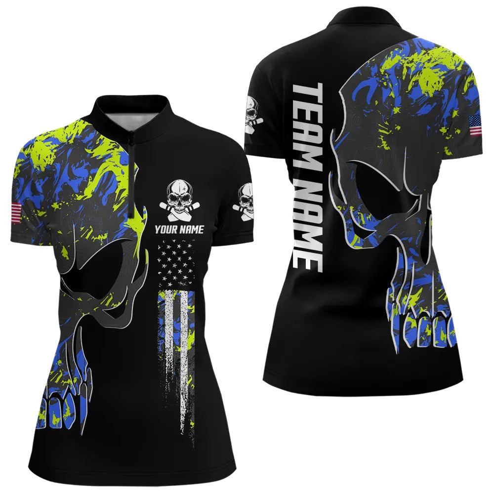 Skull Camouflage American Flag Women Bowling Shirt Custom Patriotic Bowling Ladies Team Jerseys NQS9642
