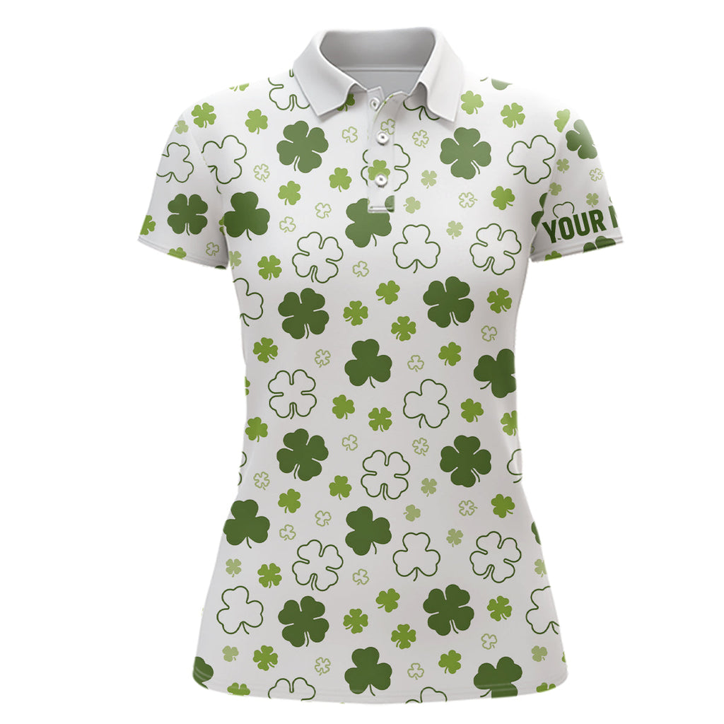 White Green Clover St Patrick Day Golf Polo Shirts Custom Golf Shirts For Women Golfing Gifts LDT1267