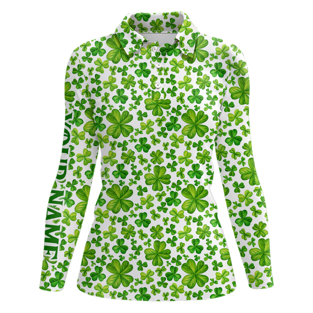 Womens golf polos shirts Watercolor green clover St Patrick's Day pattern custom team golf polos NQS7181