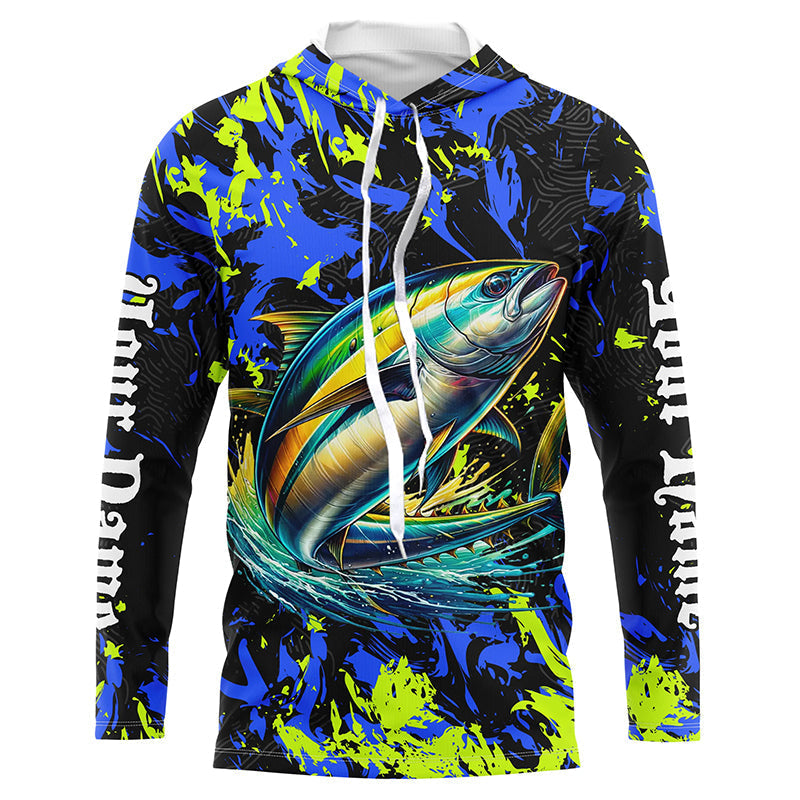 Tuna fishing green blue camo Custom UV protection performance long sleeve fishing shirt jerseys NQS7134