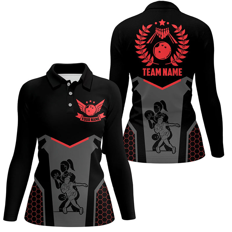 Black Bowling Jerseys For Women Custom Retro Bowling Shirts For Team Bowlers | Red NQS7552