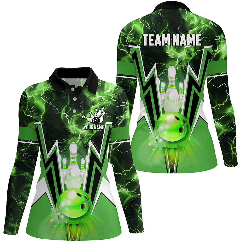 Green lightning thunder Bowling Polo, 1/4 Zip Shirt for Women Custom Bowling Team Jerseys for bowlers NQS7591