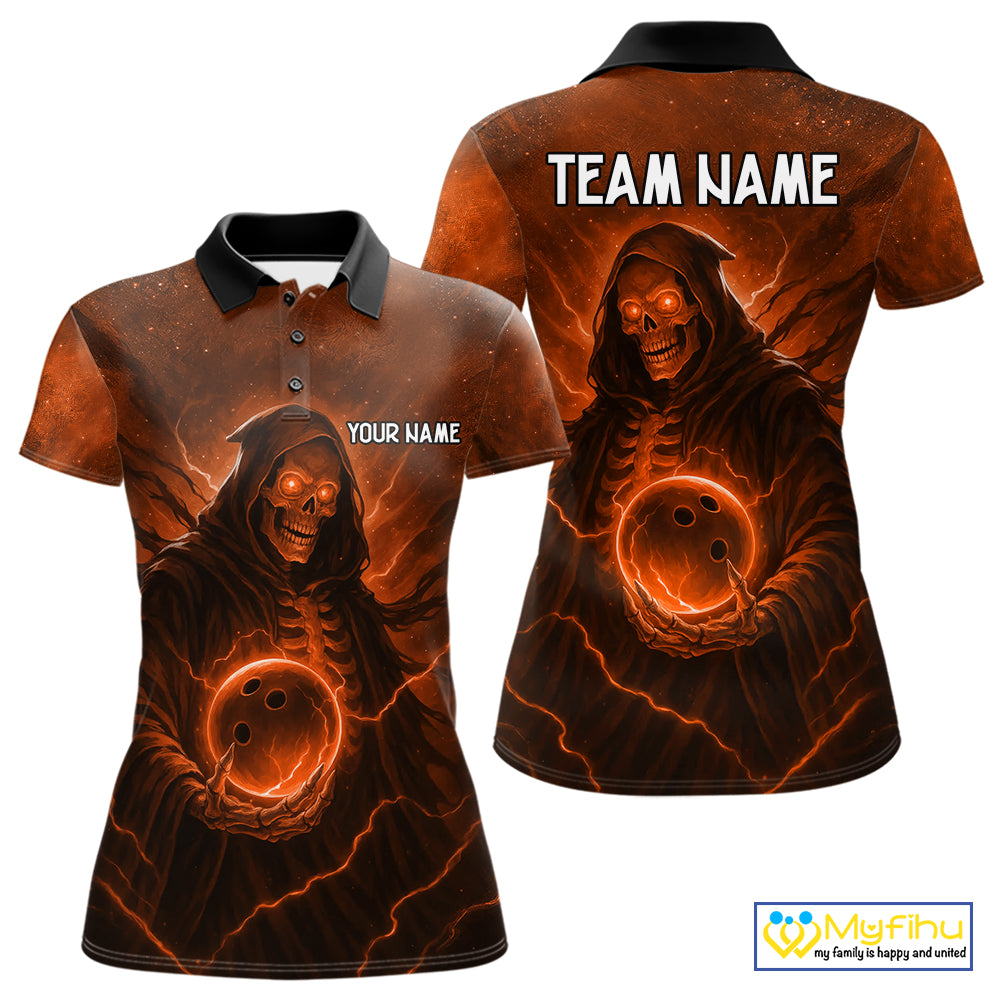 Orange Thunder Lightning Skull Reaper Bowling Shirts For Women Custom Halloween Team Bowling Jerseys NQS10680