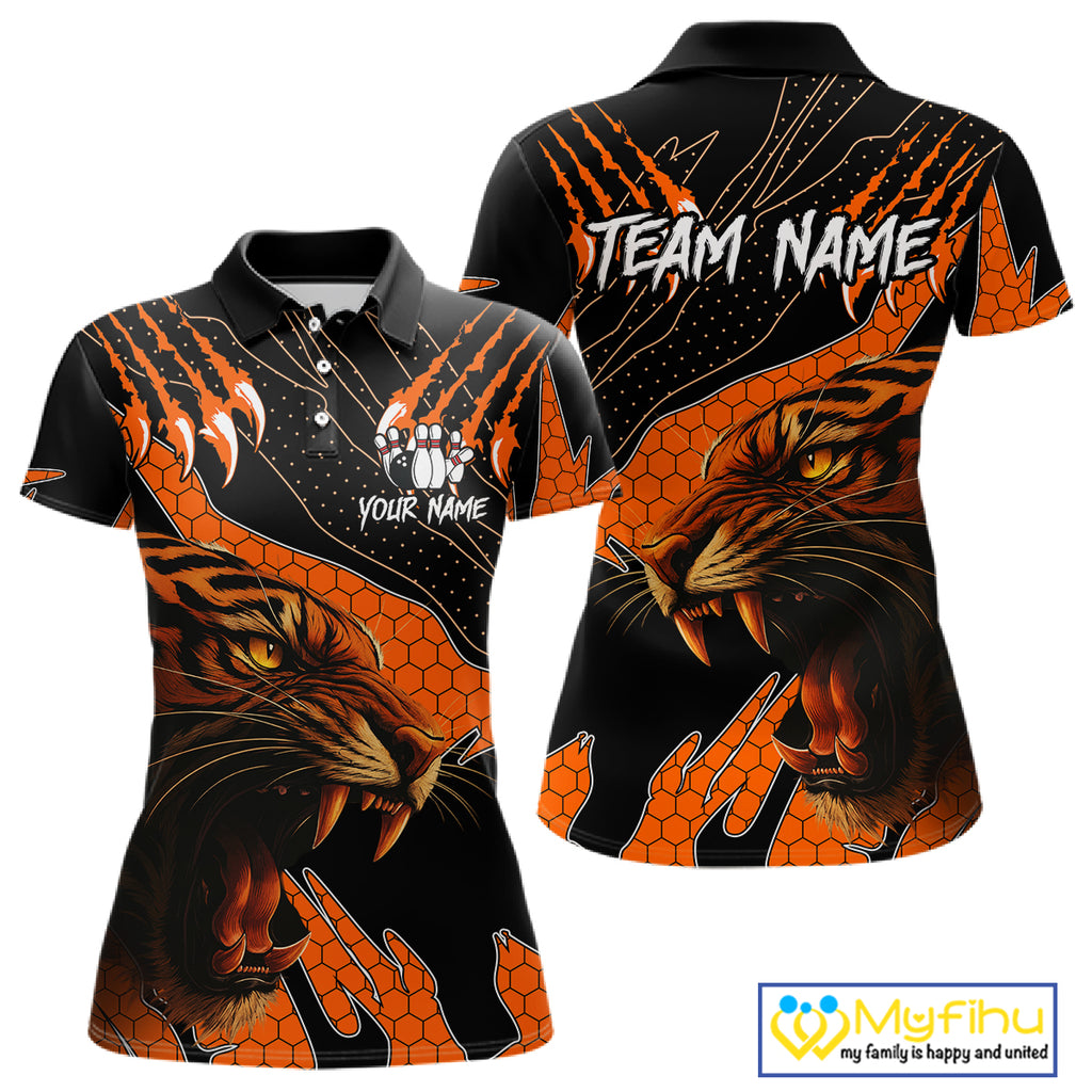 Personalized Tiger Bowling Team Women Polo, Quarter Zip Shirt, Black And Orange Tiger Bowling Jerseys NQS10398