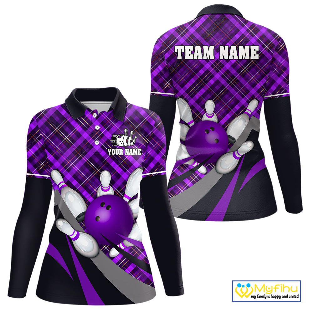 Purple Plaid pattern Bowling shirts For Women Custom Team Bowling Jersey Xmas Gift For Bowlers NQS10494