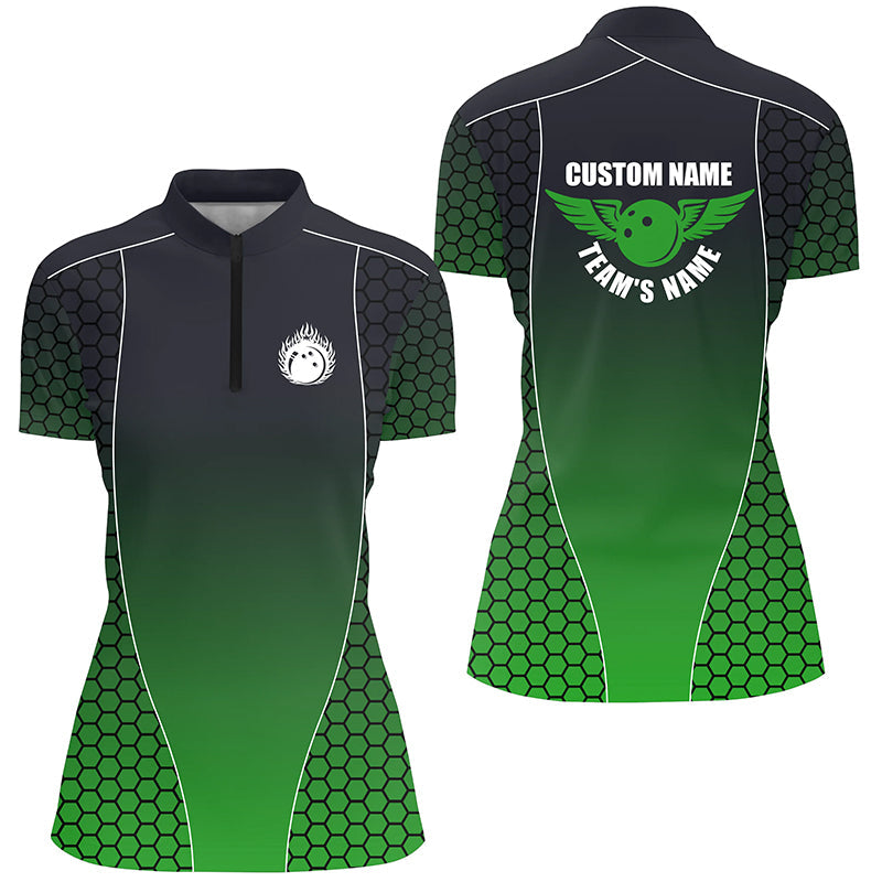 Custom Bowling Shirts With Names For Women, Flaming Bowling Ball Bowling Team Shirts | Green IPHW4241