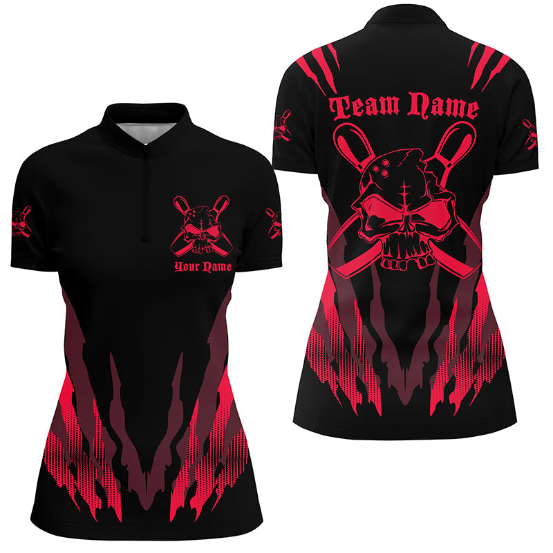 Custom Bowling Shirts For Women, Skull Bowling Team Shirts Bowling Pin | Red IPHW4484