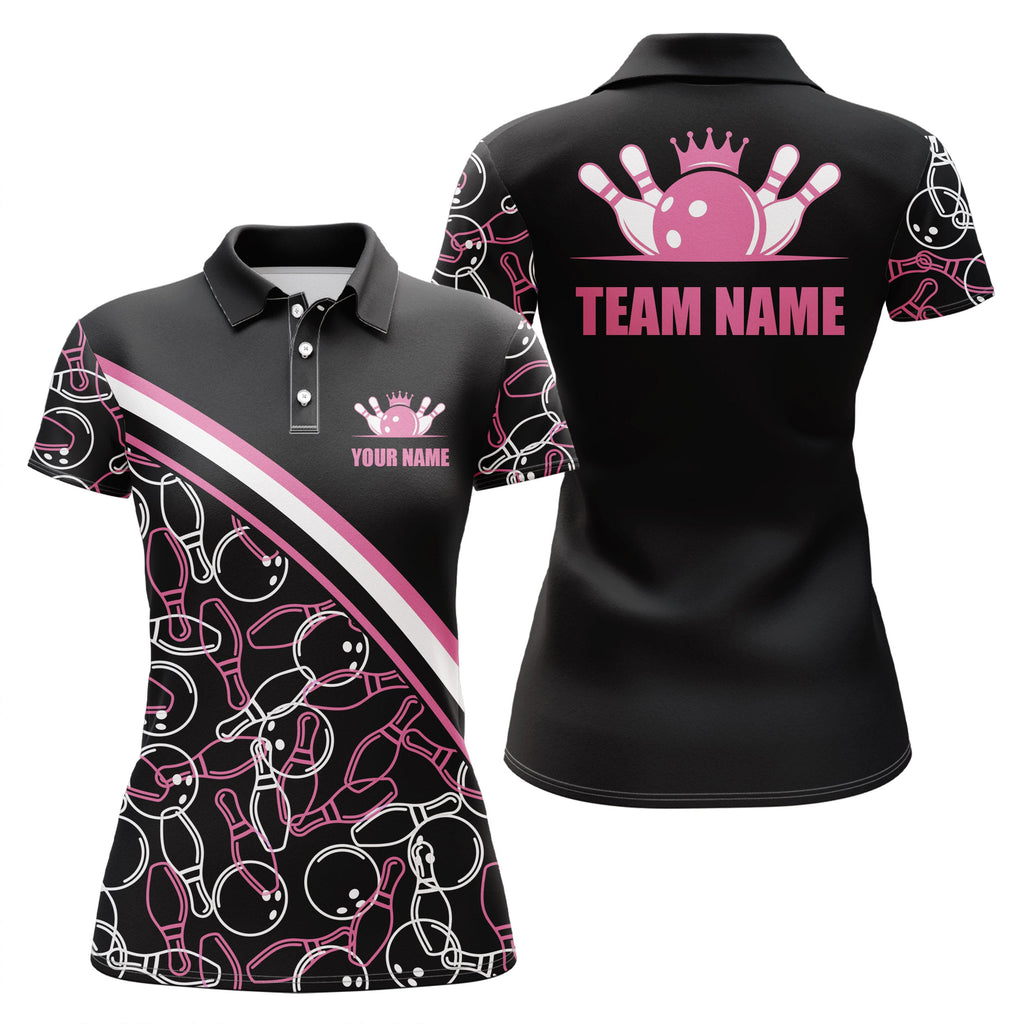 Custom Bowling Shirts For Women, Bowling Queen Team Jerseys Bowling Ball And Pins | Pink IPHW4504
