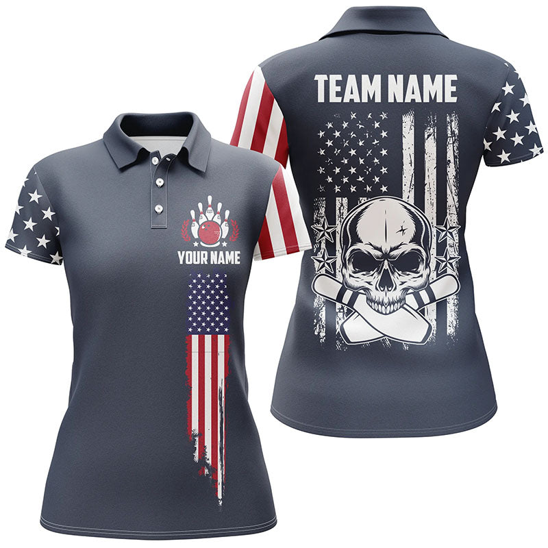 Personalized Skull Bowling Shirt For Women, Custom Team'S Name American Flag Bowler Jersey IPHW5141