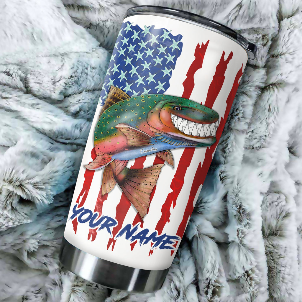1pc Trout fly fishing American flag rainbow trout ChipteeAmz's art Custom Stainless Steel Tumbler Cup AT058