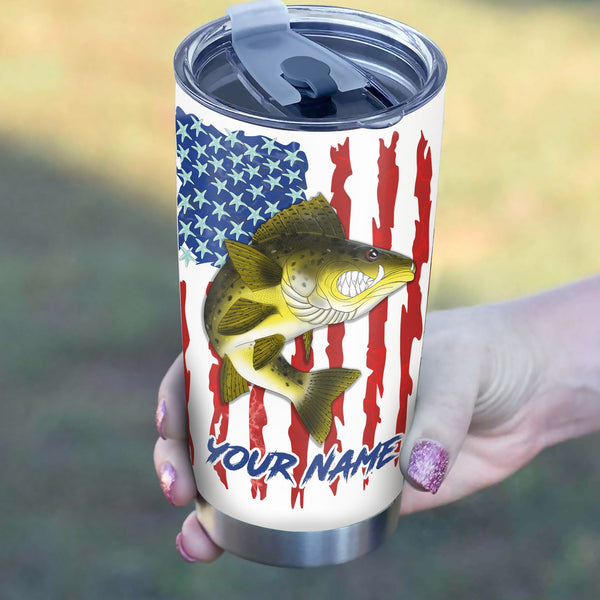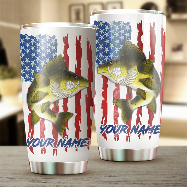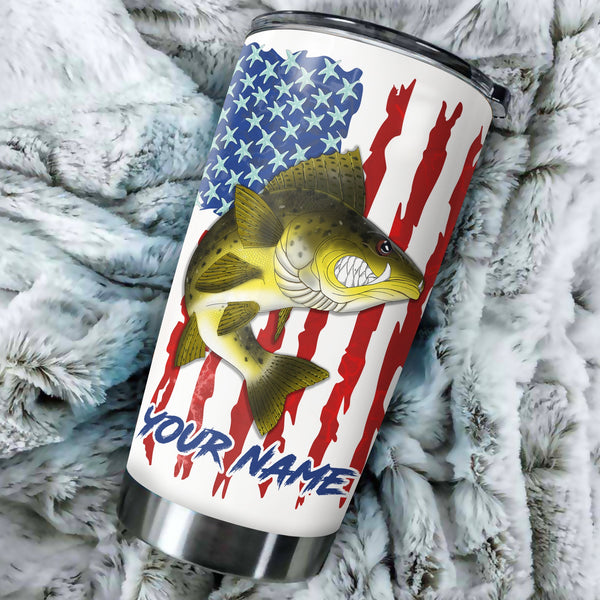 1pc Walleye fishing American flag angry Walleye ChipteeAmz's art Custom Stainless Steel Tumbler Cup AT059