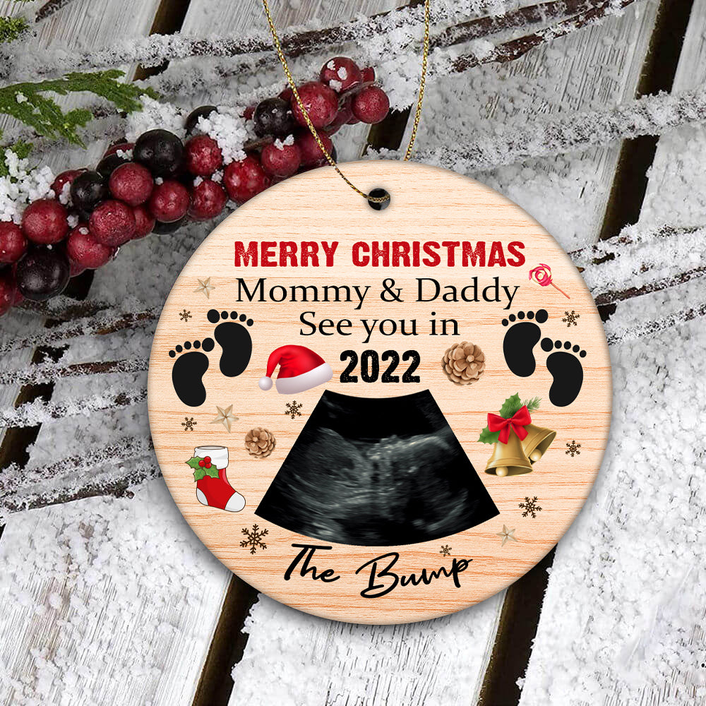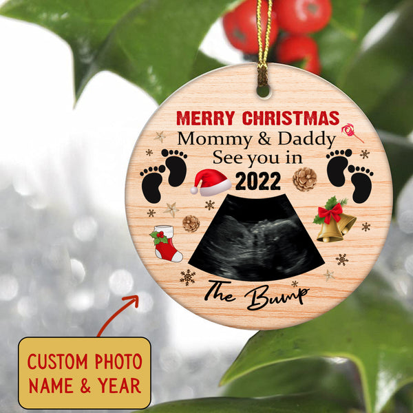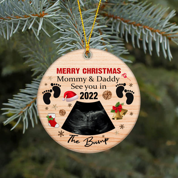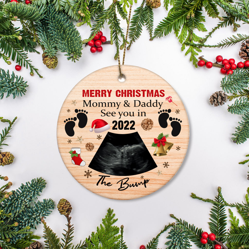 Baby Handprint Ornament| Bump First Christmas to Mommy and Daddy Baby Sonogram Ornament on Christmas OP48