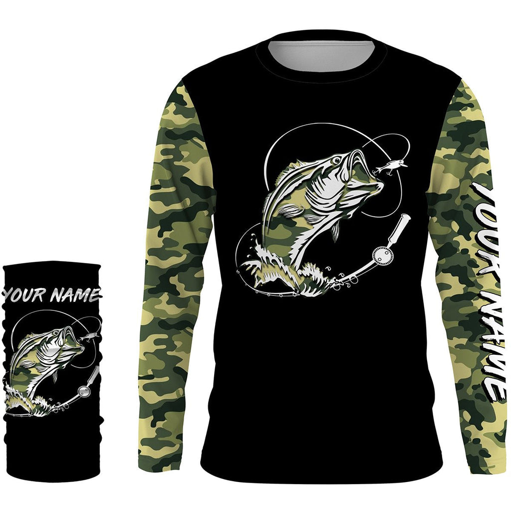 Bass Fishing tattoo green camo Custom Long Sleeve performance Fishing Shirts, personalized Bass Fishing jerseys NQS2408