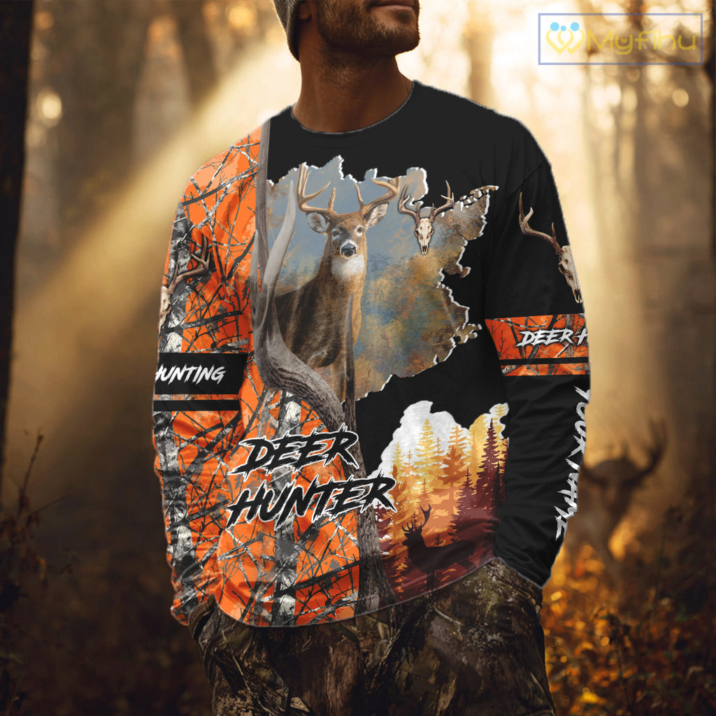 Inspired by the thrill of the hunt and the beauty of the outdoors, this shirt combines durability, comfort, and a unique hunting vibe. Customize it with your name or preferred design elements — from deer graphics to scenic landscapes — to create a one-of-a-kind piece. A perfect gift for passionate deer hunters and outdoor lovers, especially during hunting season.