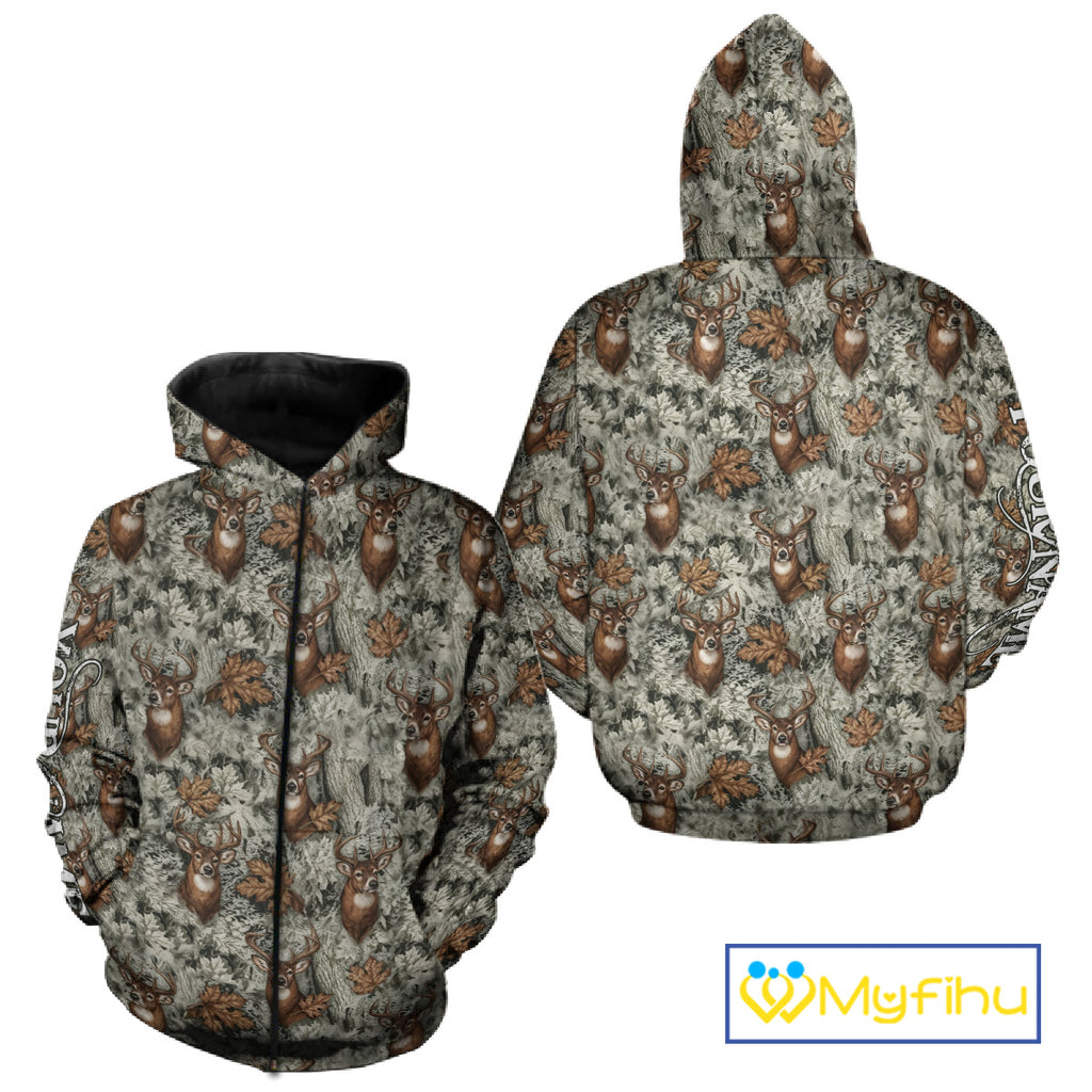 Beautiful Deer Hunting Shirt Pattern Deer Camo Custom Name 3D All Over Printed Hunting Gift NHT89