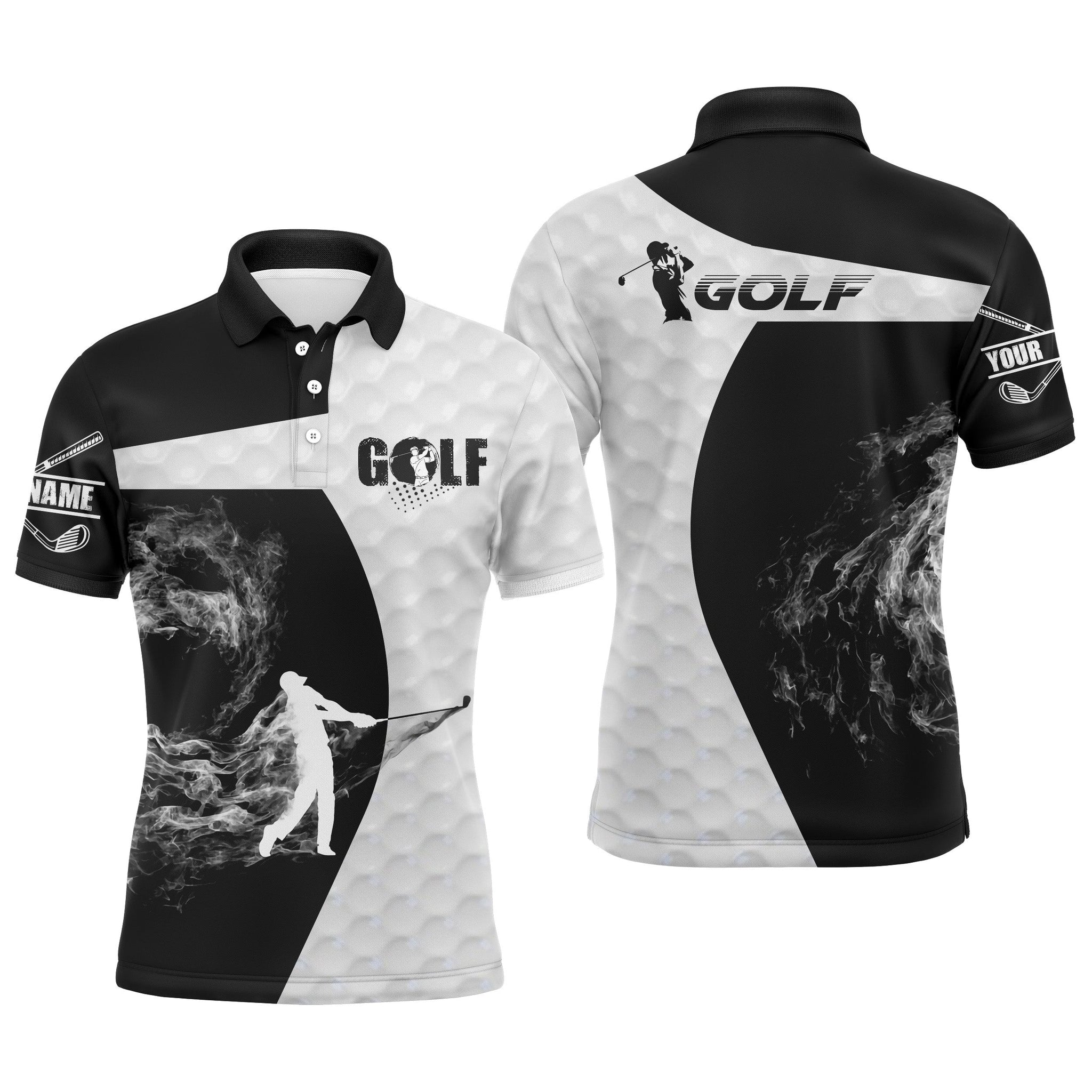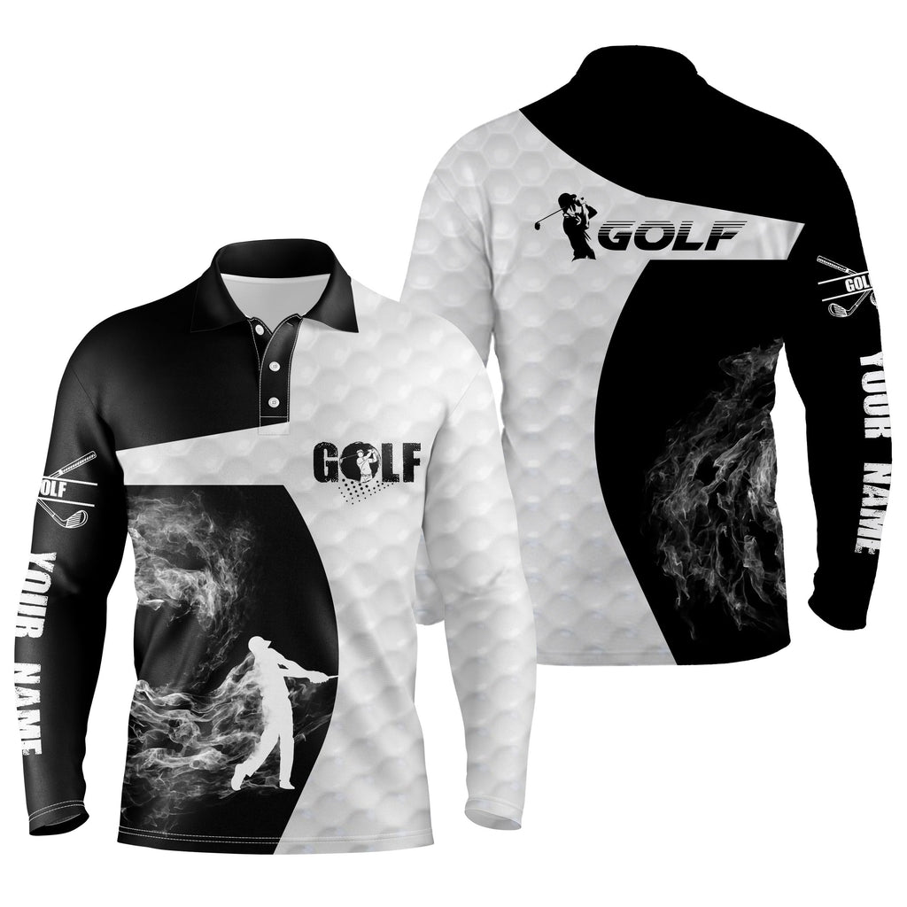Black and white long sleeve golf polo shirts for mens custom golf shirts, golfer gifts NQS3668