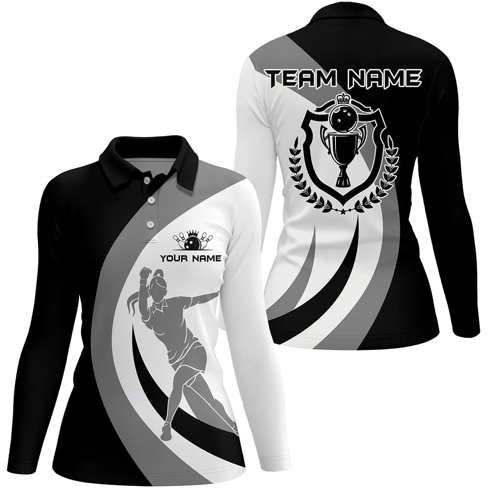 Black and white retro Bowling Polo Shirt For Women Bowling Jersey Custom Bowling League Team Shirt NQS6704