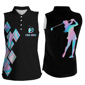 Black hologram Women sleeveless polo shirt custom golf shirts for ladies NQS5709