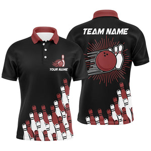 Black retro bowling team shirt custom Men Bowling Polo Shirt, bowling gifts for him | Red NQS7054