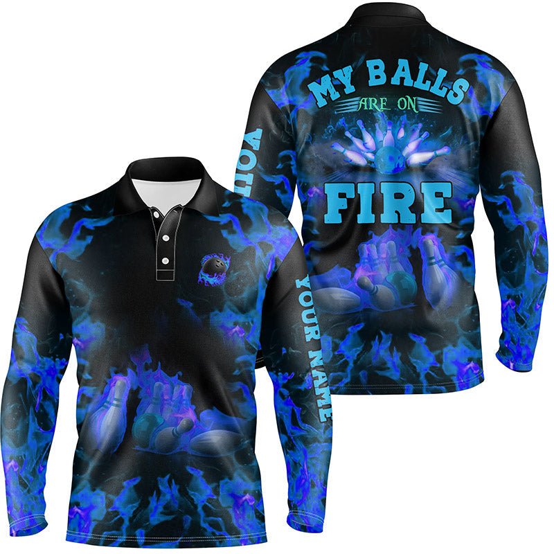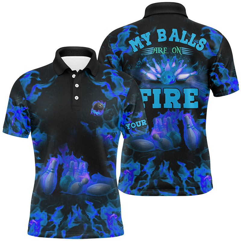 Blue Flame bowling shirt custom name my balls are on fire bowling polo shirts for men, bowling jerseys NQS6457