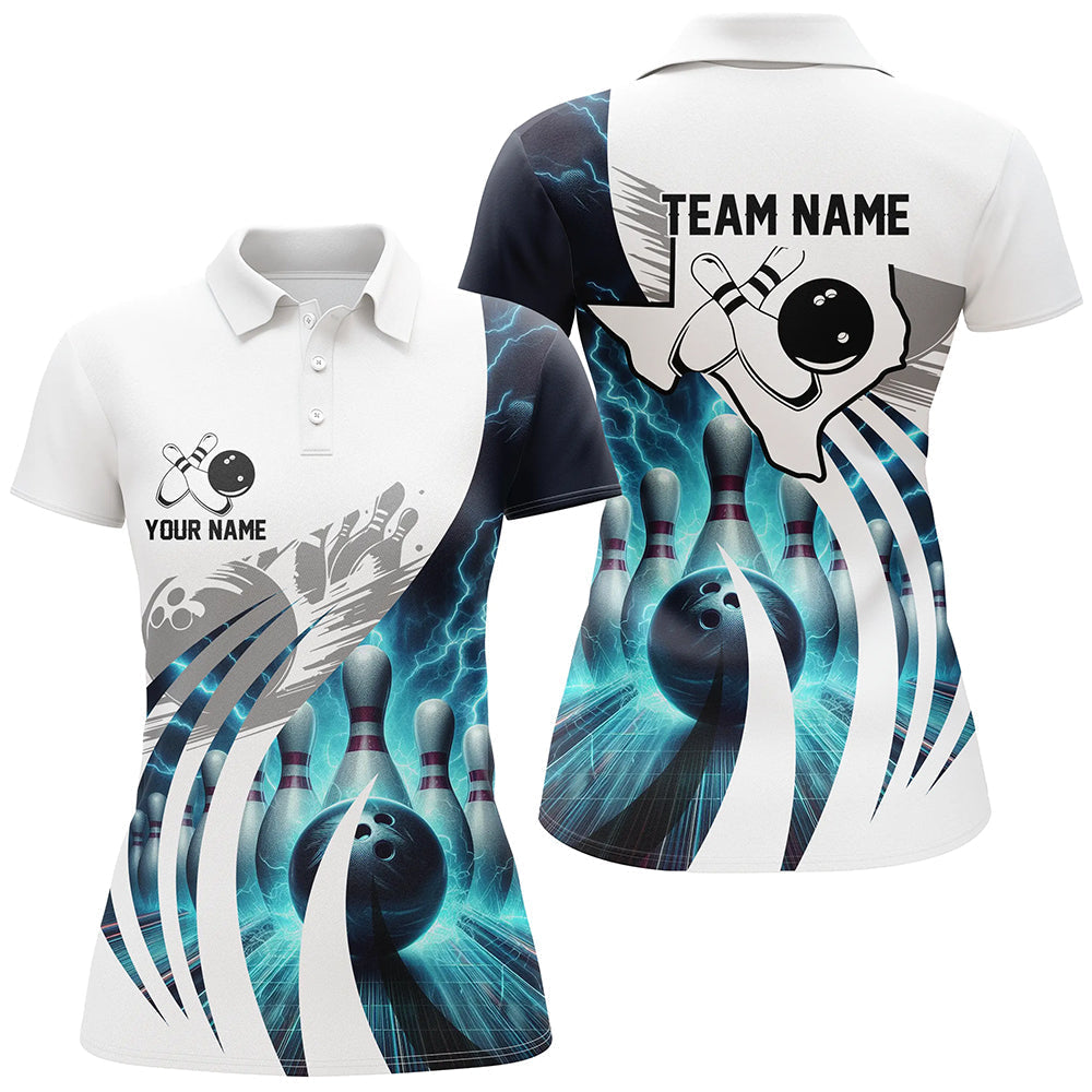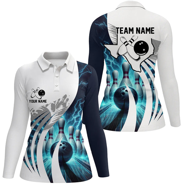 Blue lightning thunder Women Bowling Polo Shirts Custom Texas Team league Jerseys, gifts for bowlers NQS7074