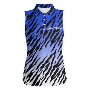 Blue tiger stripes pattern Womens sleeveless polo shirts custom golf apparel for ladies, golf gifts NQS7110